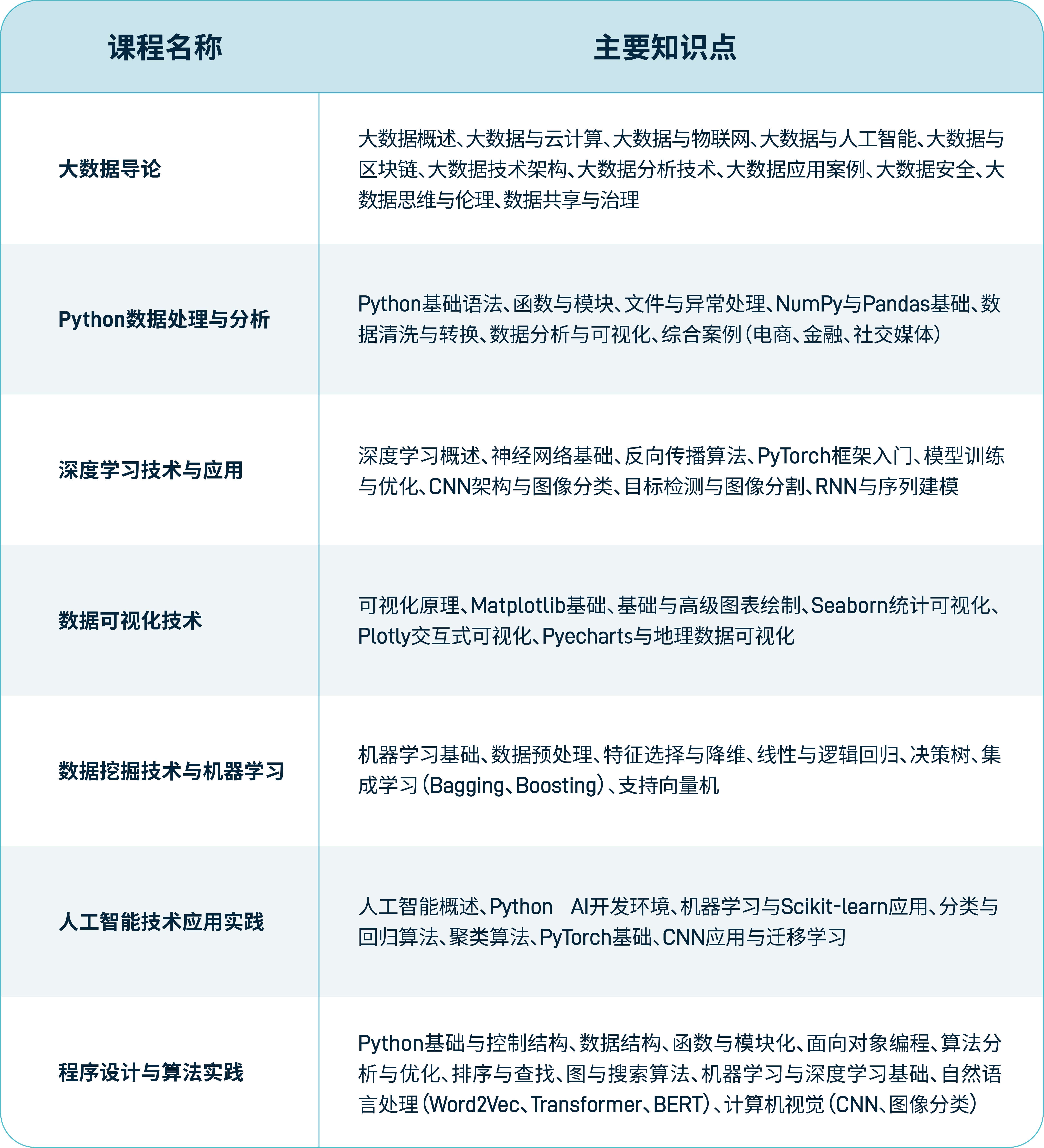 实训课程结合真实项目场景,提供丰富的实验案例、可供操作的数据集与实训指导,支持学生在模拟或真实环境中完成算法设计、模型训练与应用部署。通过理论与实训的深度融合,助力知识掌握到技能提升的有效转化。